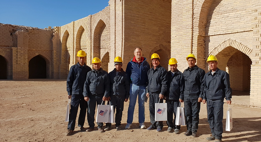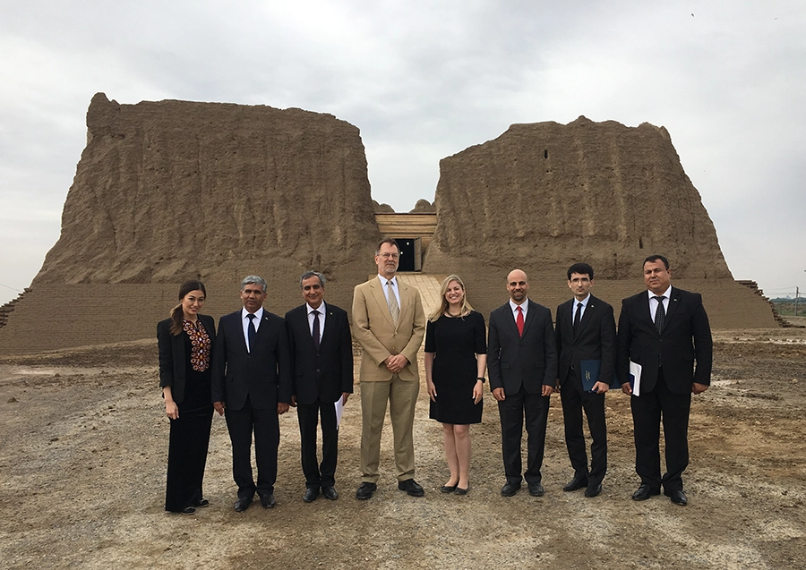 С туркменскими чиновниками на фоне крепости Большая Кыз-кала на территории заповедника «Древний Мерв». Фото из личного архива А. Мастарда