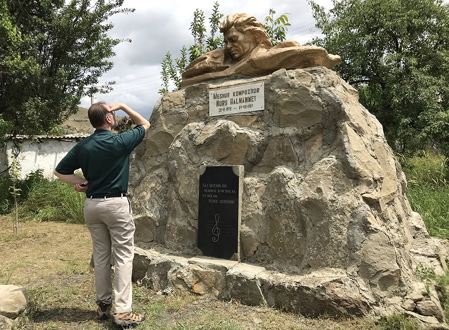 У памятника туркменскому композитору Нуры Халмамедову в поселке Дайна. Фото из личного архива А. Мастарда