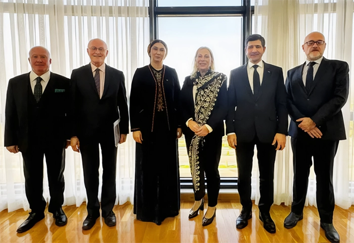 Встреча Посла ЕС в Туркменстане Беаты Пексы, Посла Германии Бернда Хайнца, Посла Франции Филиппа Мерлена и представителя Посольства Италии в Туркменистане Кармело Лео с заместителем министра иностранных дел Туркменистана Мяхри Бяшимовой. Ашхабад, 30 октября 2024 года. Фото: EU in Turkmenistan