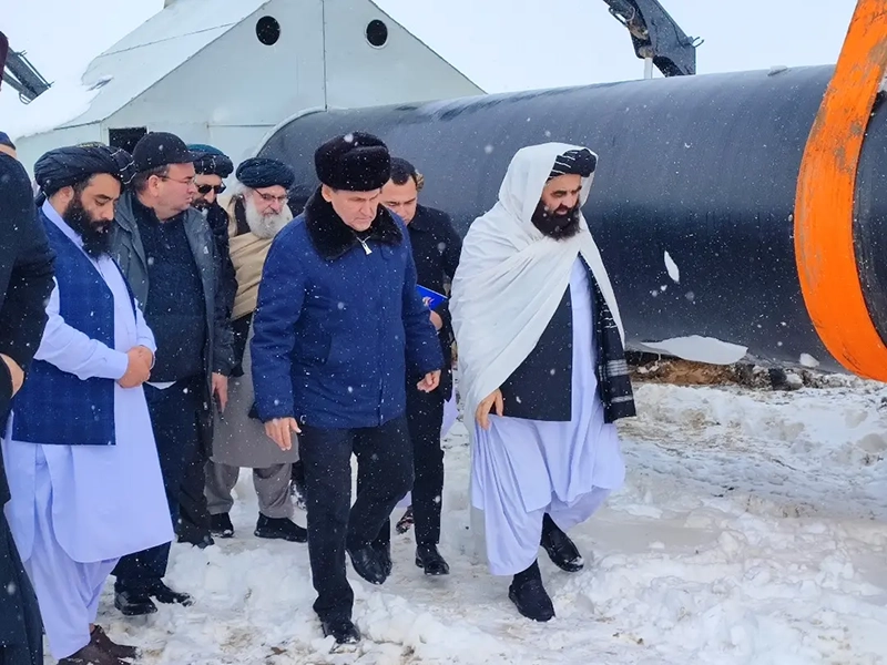 Министр иностранных дел Туркменистана Рашид Мередов и министр иностранных дел Афганистана Амир Хан Муттаки инспектируют строительство афганского участка газопровода ТАПИ. Провинция Герат, декабрь 2024 года. Фото: МИД Туркменистана