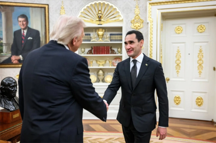 Президент США Дональд Трамп принимает президента Туркменистана Сердара Бердымухаммедова в Белом доме за месяц до того, как официально признать граждан Туркменистана представляющими угрозу национальной безопасности США. Вашингтон, 6 ноября 2025 года.